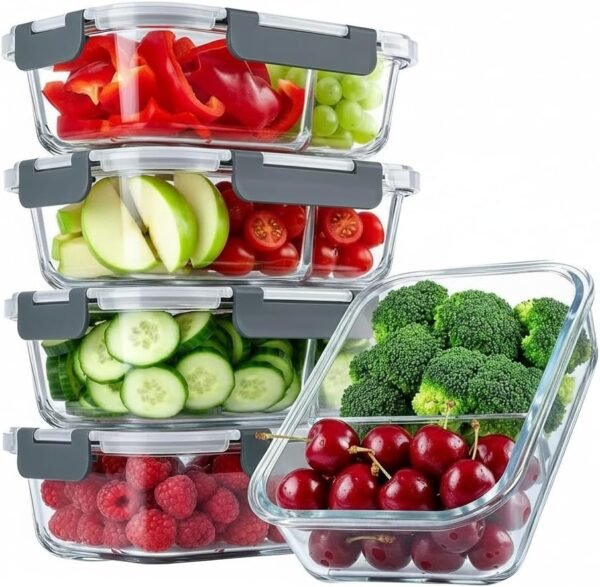 - 【10 Pack Glass Food Containers】 NastNoon food containers set includes 5x 1040ml glass meal prep containers and 5x 410ml portion-size glass containers. Different sizes of containers to fulfill all your storage needs. Great for lunch prep, picnics, BBQs, and everyday kitchen storage. Durable, stackable, and easy to clean—a simple solution for your home.