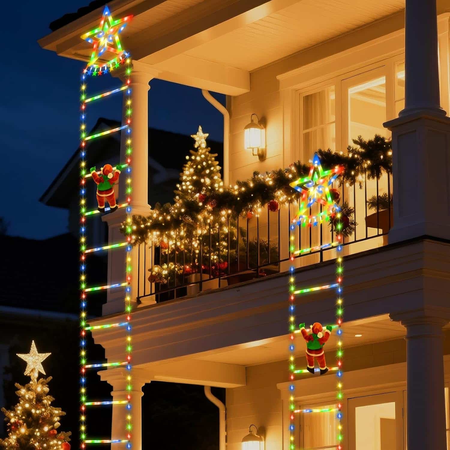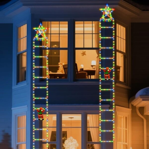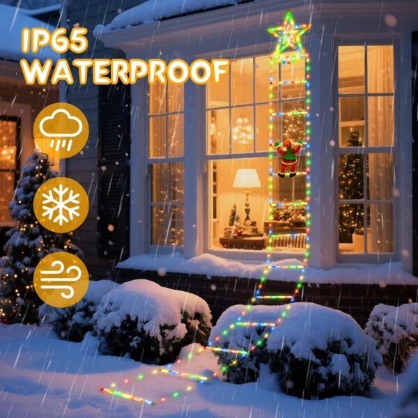 - 2026 Newest Christmas Lights: Newly designed Christmas light features an 2.7M 134 LED lighted rope ladder with a removable Santa Claus figure climbing the decorative LED ladder, adding an engaging story element to your holiday decor. This Christmas decoration is perfect for DIY displays in home, garden, wall, window, porche, and Christmas tree