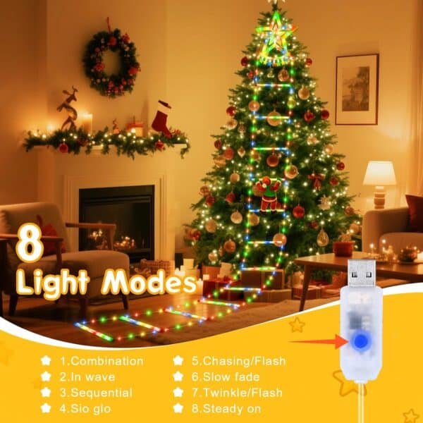- 8 Lighting Modes: Ninonly Christmas Decorative Ladder Lights with Santa Claus features 8 preset festive lighting modes, including combination, in wave, sequential, slo glo, chasing/flash, slow fade, twinkle/flash, steady on effects. Switch modes using the button on the plug to suit your decorating needs and enhance the holiday atmosphere