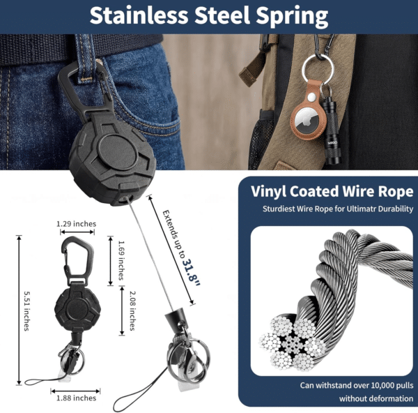 - 31.8-inch Retractable Length: The keychain’s wire rope can extend up to 31.8 inches (80cm), a length that conforms to ergonomic design and meets your retractable requirements for badge reels. No more struggling to find your ID and keys in your pocket or backpack.