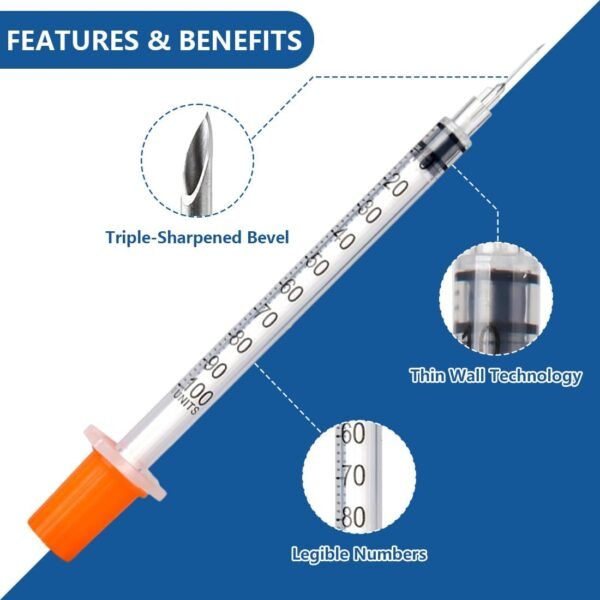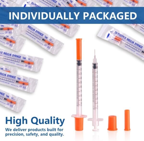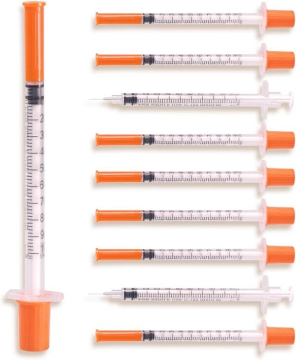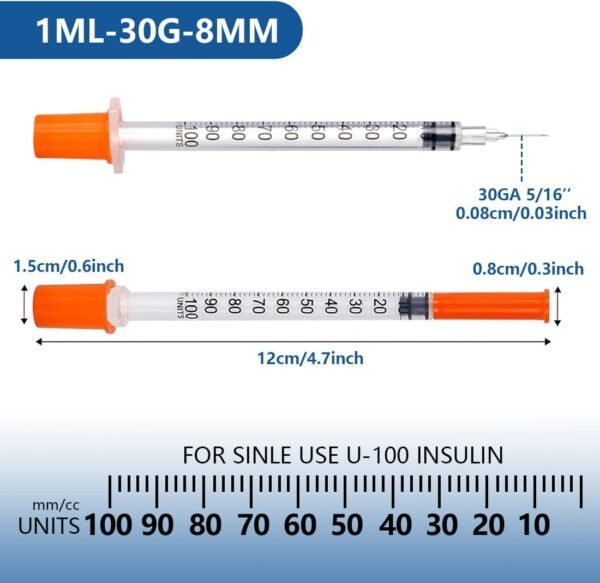 - U-100 1ml Syringe – Disposable 1ml/cc 30G 5/16 Inch (8mm) syringe, 20 pack individually sealed wrapped.