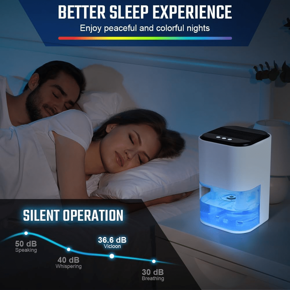 • 【Multifunction】The visualized 2L water tank is easy to take out, clean. This dehumidifiers for home will auto shut down when the water is full to prevent overflow. 7 colorful lights provide the light you need when getting up at night,Colorful atmosphere lights are also suitable for your bedroom.