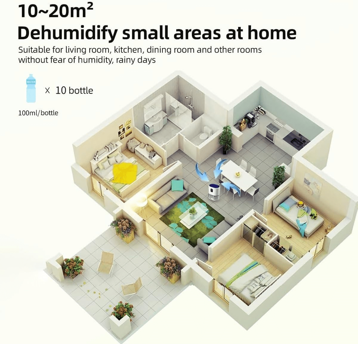 • 【High Performance】Our mini dehumidifier are suitable for 10-20m², with vertical air outlet on the top, fast air circulation, continuous dehumidification, and no more clothing odor.