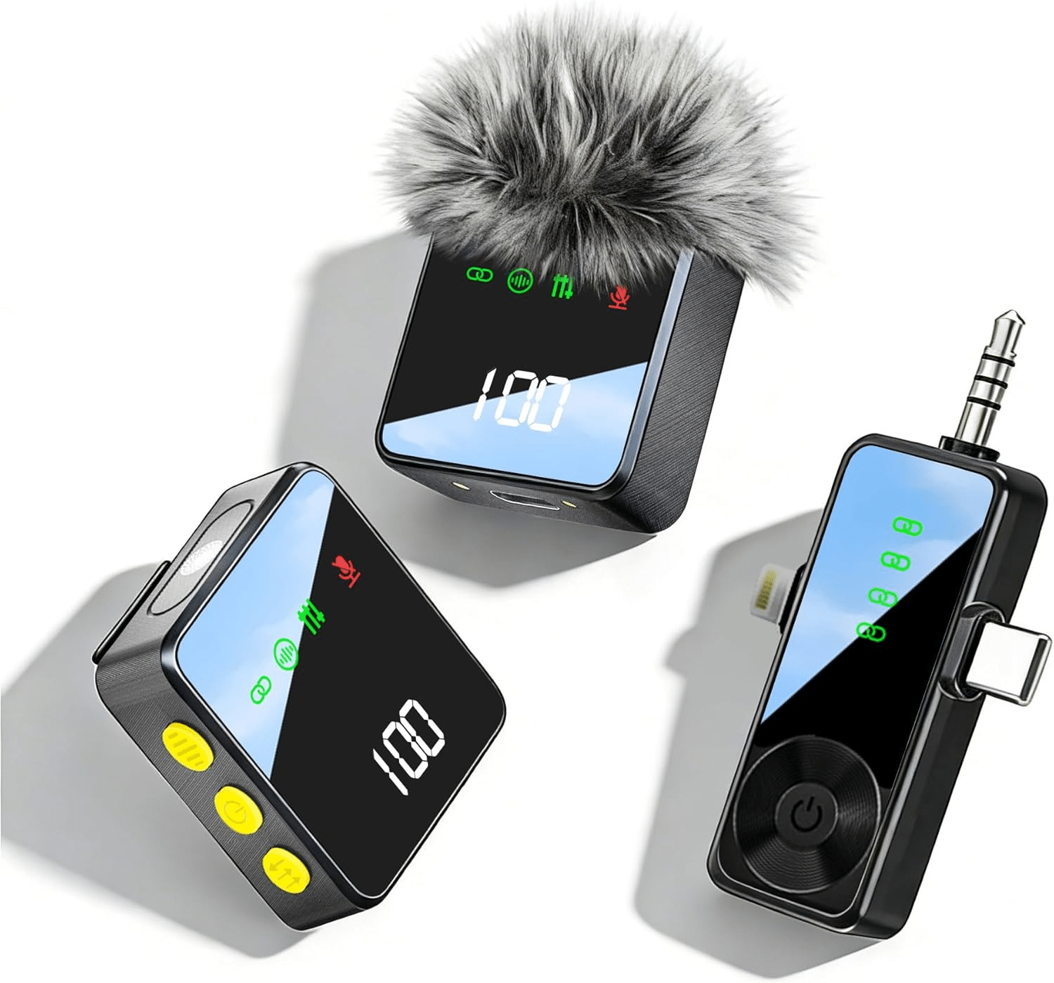 • 🔋【All-Day Battery Life】: This microphone for iPhone includes 2 small microphones with digital display, a total battery life of up to 20 hours (each mic charges fully in just 2 hours and provides 10 hours of use per charge). Additionally, you can charge your phone via the receiver's Type-C port during recording.Whether you’re live streaming for hours or shooting videos in remote areas without power access, the lav microphone lets you focus on your creativity—no more worrying about running out of battery.