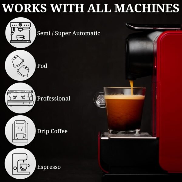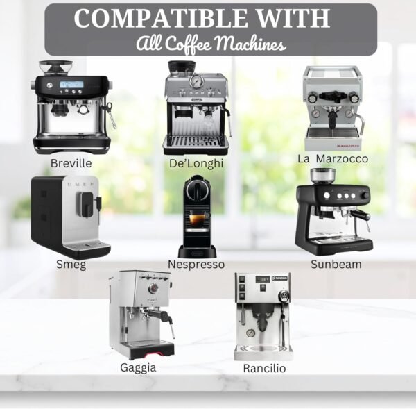 - ☕ 𝗖𝗼𝗺𝗽𝗮𝘁𝗶𝗯𝗹𝗲 𝗪𝗶𝘁𝗵 𝗔𝗹𝗹 𝗖𝗼𝗳𝗳𝗲𝗲 𝗠𝗮𝗰𝗵𝗶𝗻𝗲𝘀 – Suitable for espresso machines, pod machines, fully automatic, semi-automatic, manual, and bean-to-cup systems.