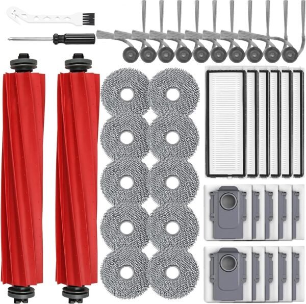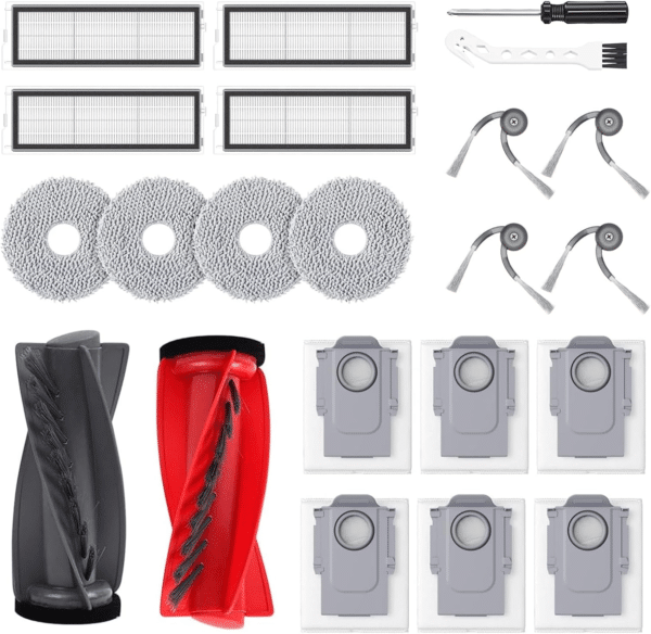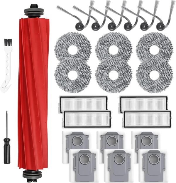 - 【All-in-One Roborock Accessories Kit】This complete set includes 1 Main Brush + 4 Side Brushes + 4 Filters + 4 Mop Pads + 6 Dust Bags + 1 Cleaning Brush + 1 Screwdriver—covers all daily maintenance needs for your Roborock Qrevo Curv, Qrevo Edge, Qrevo Edge C, Qrevo S5V, or Roborock S5V. No need to buy separate parts; stock up once for long-term use, saving time and money as a must-have supply pack for your robot vacuum.