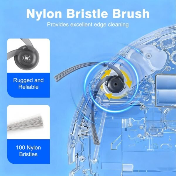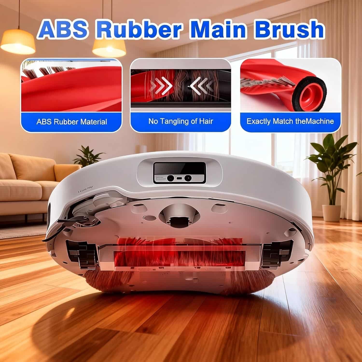 - 【Tangle-Free & Pet-Friendly Design】The main brush works seamlessly with 4 side brushes, optimized for Roborock accessories compatibility. Soft yet durable bristles + segmented structure easily pick up pet hair, long hair, and debris without tangling. It also reaches deep into corners and gaps for thorough cleaning—no more manual detangling or stuck brush hassle.
