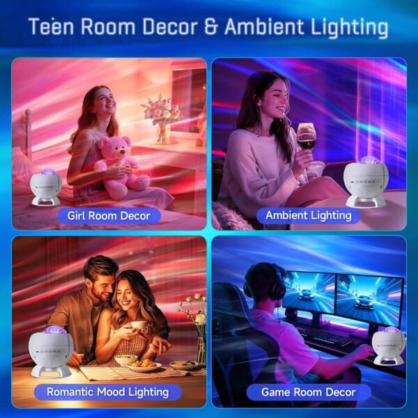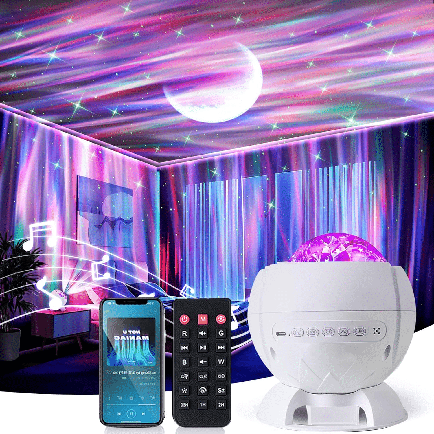 - 【HiFi Bluetooth Music Galaxy Projector Light】The star projector galaxy light projector night light projector features a high quality Bluetooth speaker to listen to your favorite music,allowing you to relax from the music and soothing northern lights projector/galaxy projector. A night light projector for bedroom can flash rhythmically with music. Galaxy projector for bedroom creates a vibrant party atmosphere. Star projector galaxy light aurora light projector skylight is suitable for your mood room lights with Bluetooth & speaker!