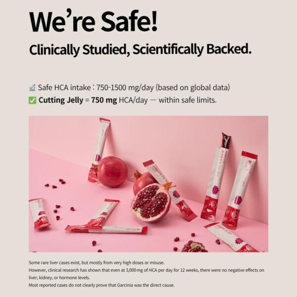 • 【Refreshing Pomegranate Flavor】Made with real pomegranate powder, this Garcinia Cambogia Cutting Jelly delivers a refreshing, fruity flavour without added sugar. Light, smooth, and naturally sweet, it’s a guilt-free treat that fits right into your daily wellness plan.