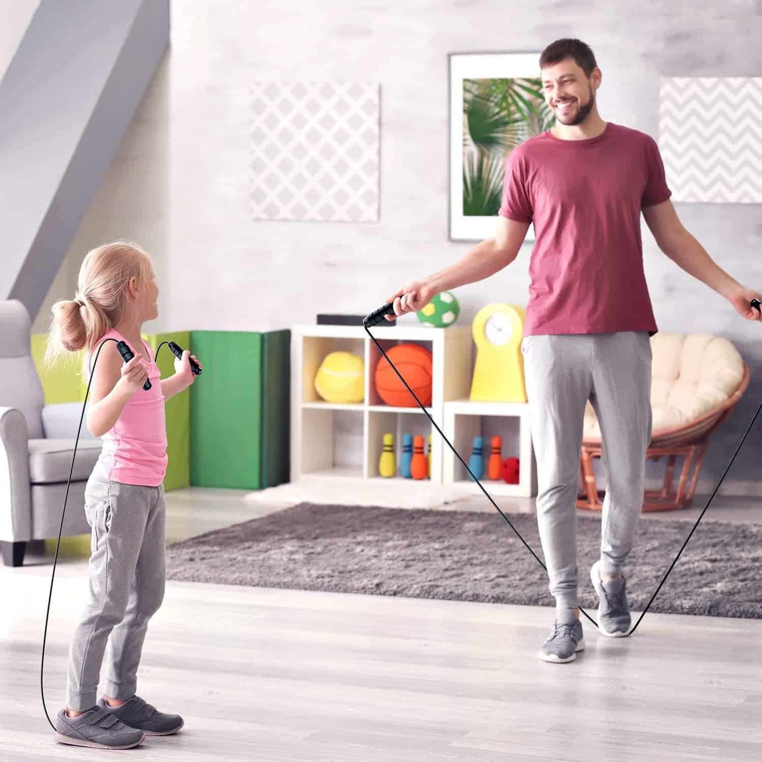 Durable & Adjustable Rope / / This jump rope is made of steel wires that are coated with strong PVC material, making it durable even after a long time exercising. Its adjustable length design enables you to customize the length according to your needs, making it suitable for everyone, no matter for kids or adults.