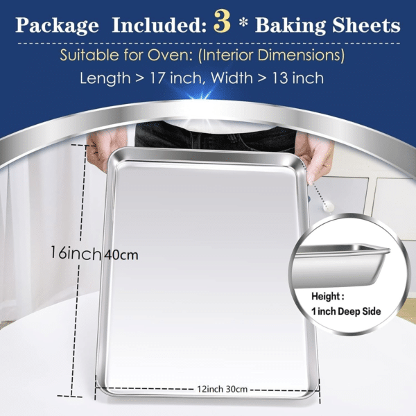 【16 INCH, SET OF 3】 Both trays 16 x 12 x 1 inch, Perfect for baking or roasting, Easy to make cookie, vegetables and meat, Also can be a serving pan and fruit container, Getting 3 piece baking pans is perfect to serve different purpose at the same time
