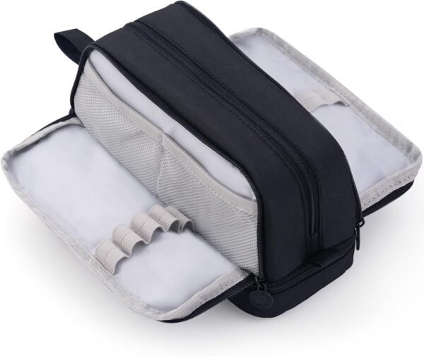 Unzip the bottom zipper, you can put your calculators or small journal on this level.