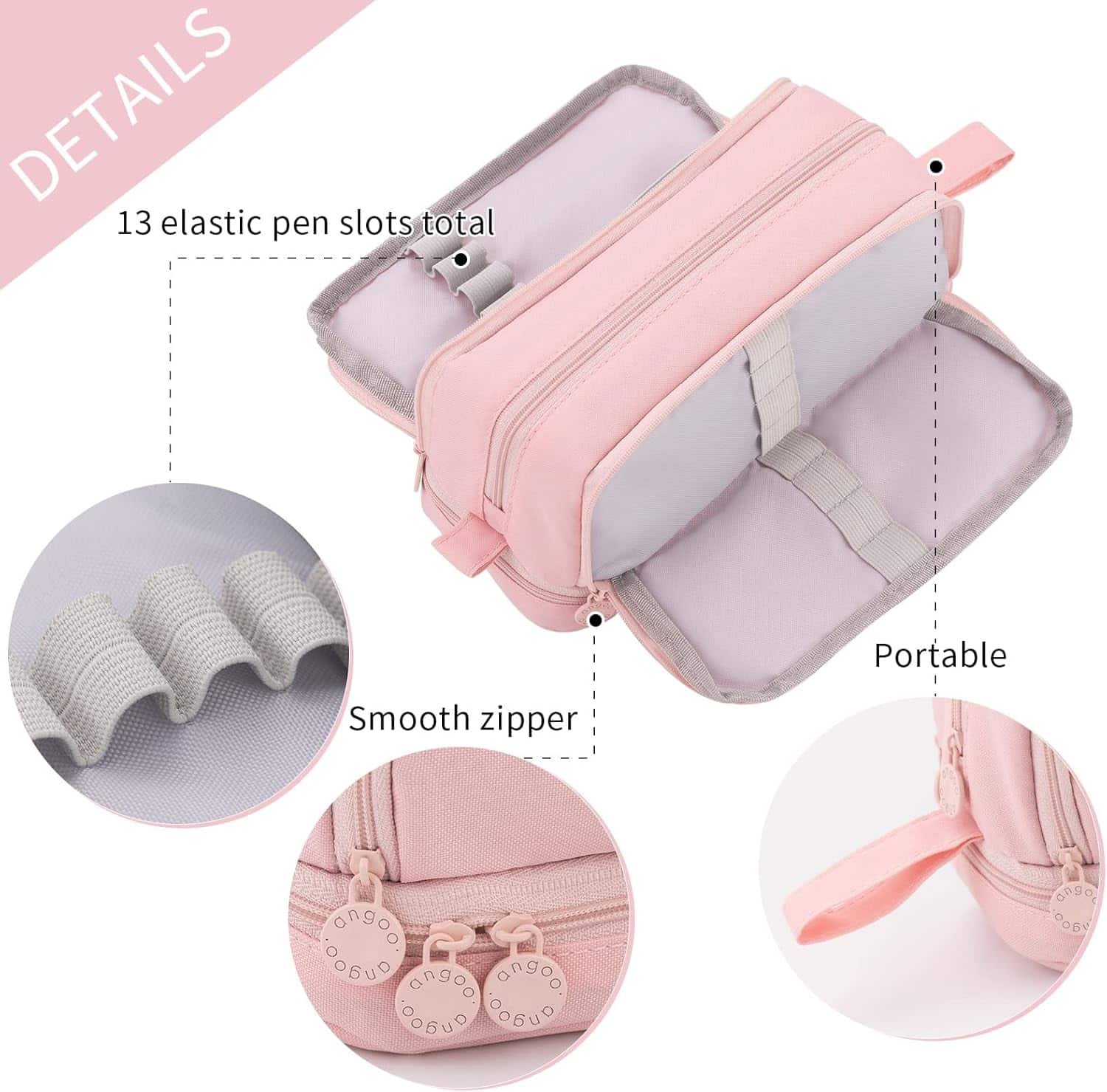 The other side has 5 elastic straps, and 2 mesh pockets is handy for erasers and other gadgets that tend to get lost, such as Rubber, Sticker, etc..