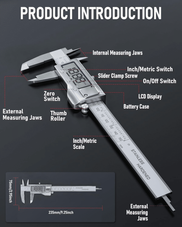 - 【Long Lasting Quality】 Highly polished surface, Heavyweight, Rugged Design with Hardened Stainless Measuring Surfaces. The body of the dial caliper measuring tool is constructed using finely polished stainless steel with a knurled thumb roller and locking screw that ensures smooth sliding and accurate positioning when taking measurements.