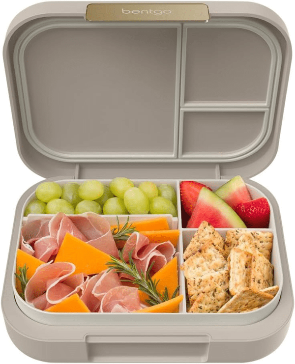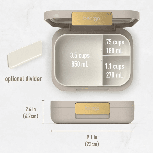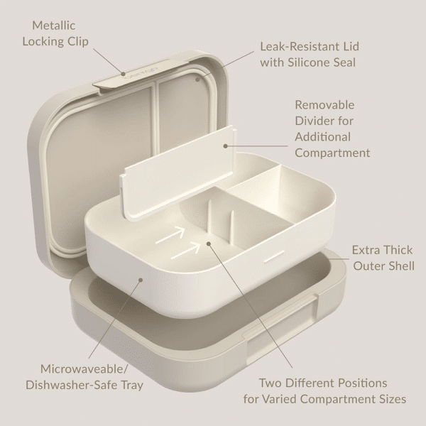 Enjoy a more sustainable and healthy lifestyle with the Bentgo® Modern Lunch Box. The compact design, which easily fits into a handbag, satchel or brief case, is the perfect solution for transporting lunch to work or school. Delight in the bento-style lunch box's versatile design by choosing to use three or four-compartments with a removeable divider, with the box also looking stylish with a contoured outer shell with a sleek matte finish, secured closed with a shiny metallic clip. The lunch box is leak-resistant, with a removable tray that is microwave and dishwasher-friendly, making eating healthily and cleaning easy.