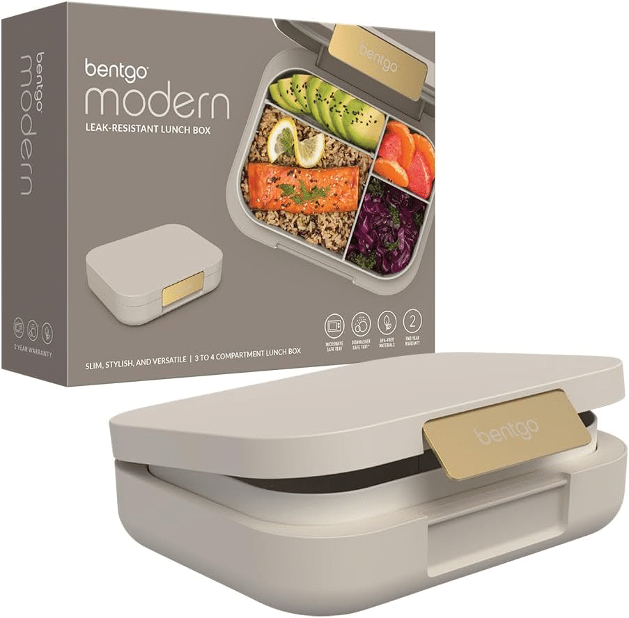 Enjoy a more sustainable and healthy lifestyle with the Bentgo® Modern Lunch Box. The compact design, which easily fits into a handbag, satchel or brief case, is the perfect solution for transporting lunch to work or school. Delight in the bento-style lunch box's versatile design by choosing to use three or four-compartments with a removeable divider, with the box also looking stylish with a contoured outer shell with a sleek matte finish, secured closed with a shiny metallic clip. The lunch box is leak-resistant, with a removable tray that is microwave and dishwasher-friendly, making eating healthily and cleaning easy.