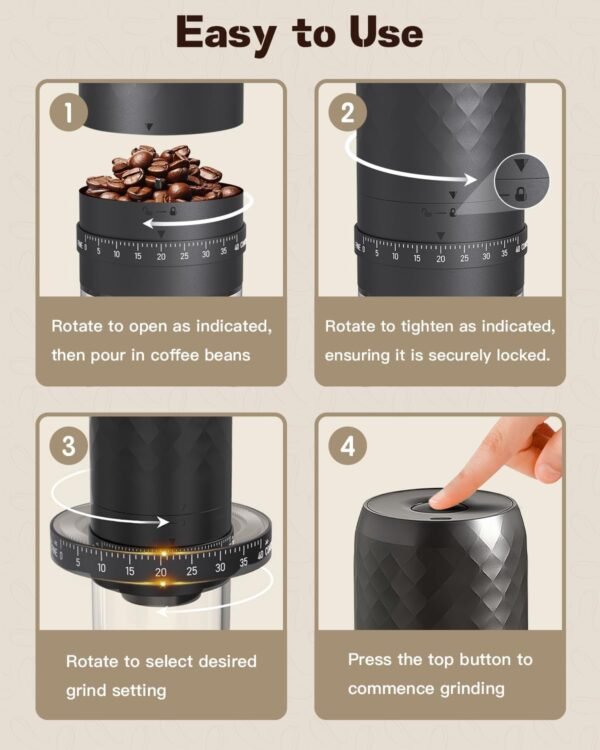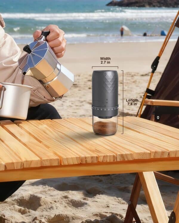 - 𝐂𝐨𝐦𝐩𝐚𝐜𝐭 & 𝐏𝐨𝐫𝐭𝐚𝐛𝐥𝐞 Lightweight and cordless travel coffee grinder, easy to carry for camping, office, or road trips. Enjoy fresh coffee anywhere.