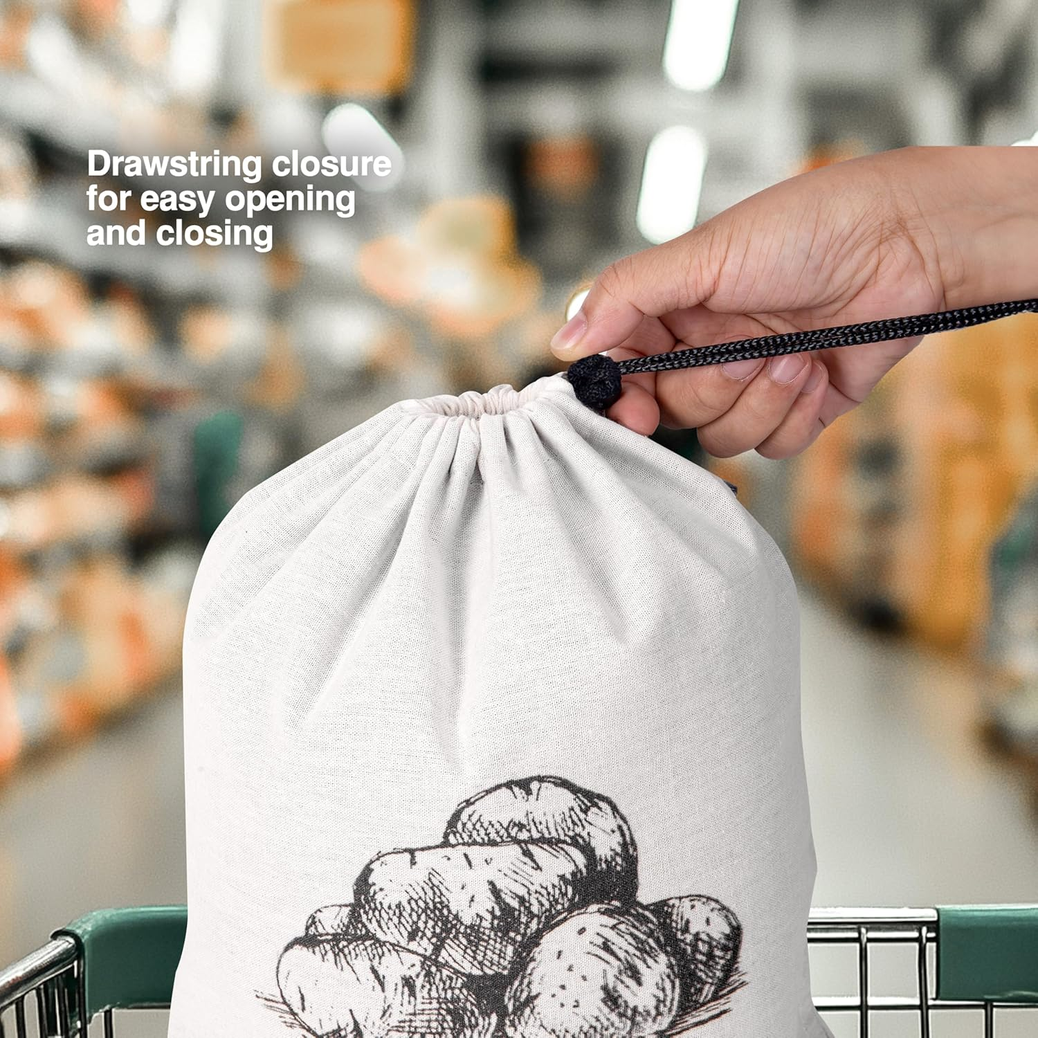 - Easy Access Drawstring & Side Zipper Features a top drawstring closure to keep contents securely stored, along with a convenient side zipper that allows you to quickly take out a few vegetables without opening the entire bag.