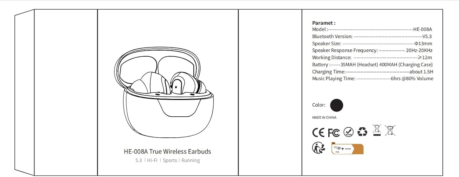 Experience the pinnacle of audio technology with the HE-008A True Wireless Earbuds. Featuring TWS 5.3 Bluetooth, these HiFi stereo headphones offer exceptional sound quality and seamless connectivity with iPhone, Android, and other Bluetooth devices.
