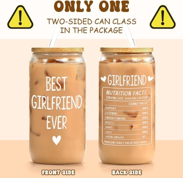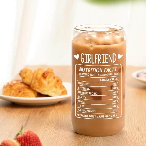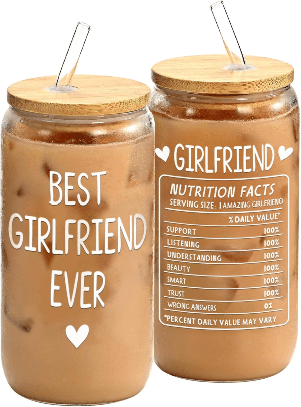 Valentines day gift for her. A 16oz glass cup with bamboo lid. Suitable for Valentines day, girlfriend birthday,anniversary, Christmas Day