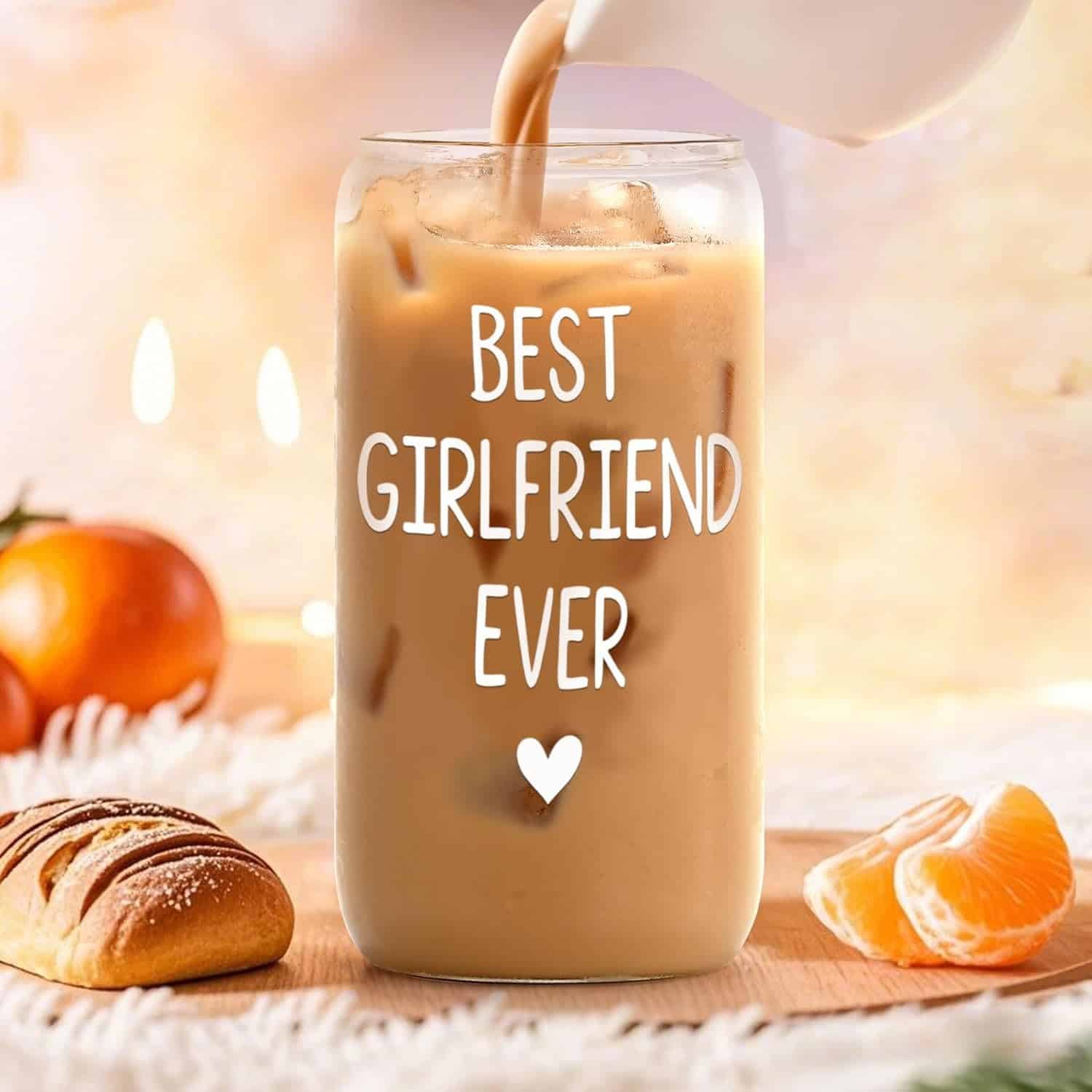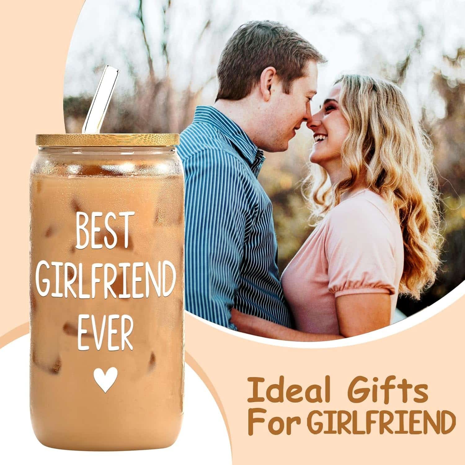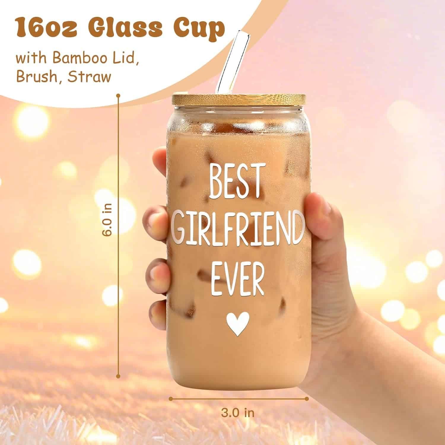 Valentines day gift for her. A 16oz glass cup with bamboo lid. Suitable for Valentines day, girlfriend birthday,anniversary, Christmas Day