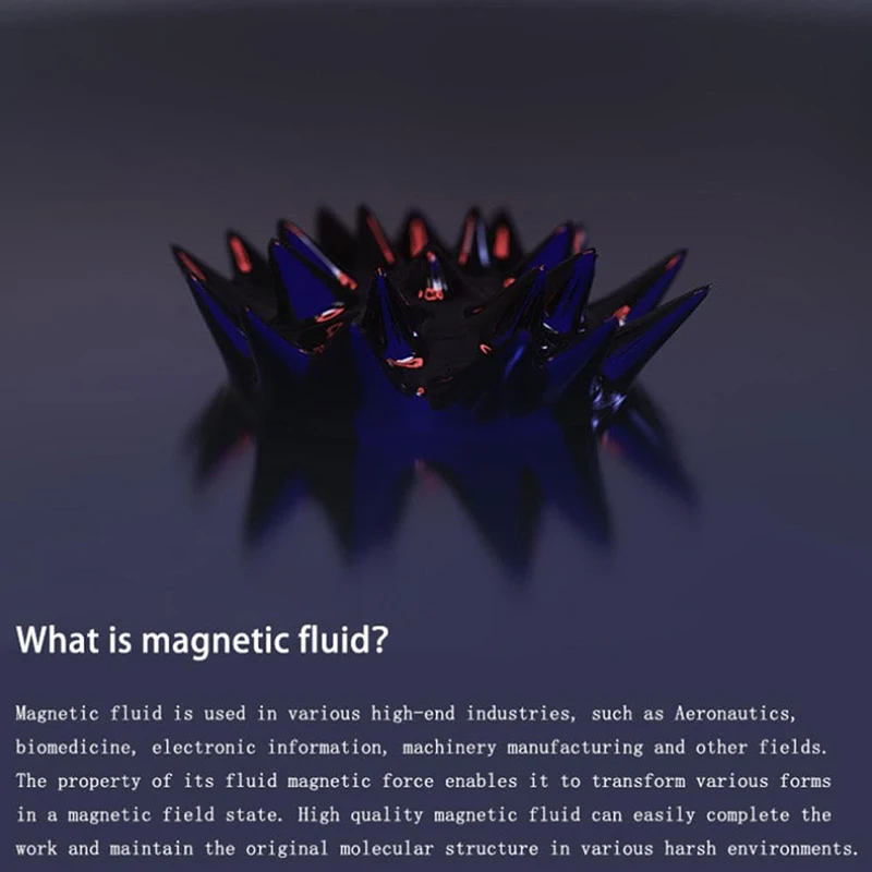 • Part of the material components of the ferrofluid of the product are: pure water, mineral oil, and nano-iron powder, all of which are non-toxic and harmless.