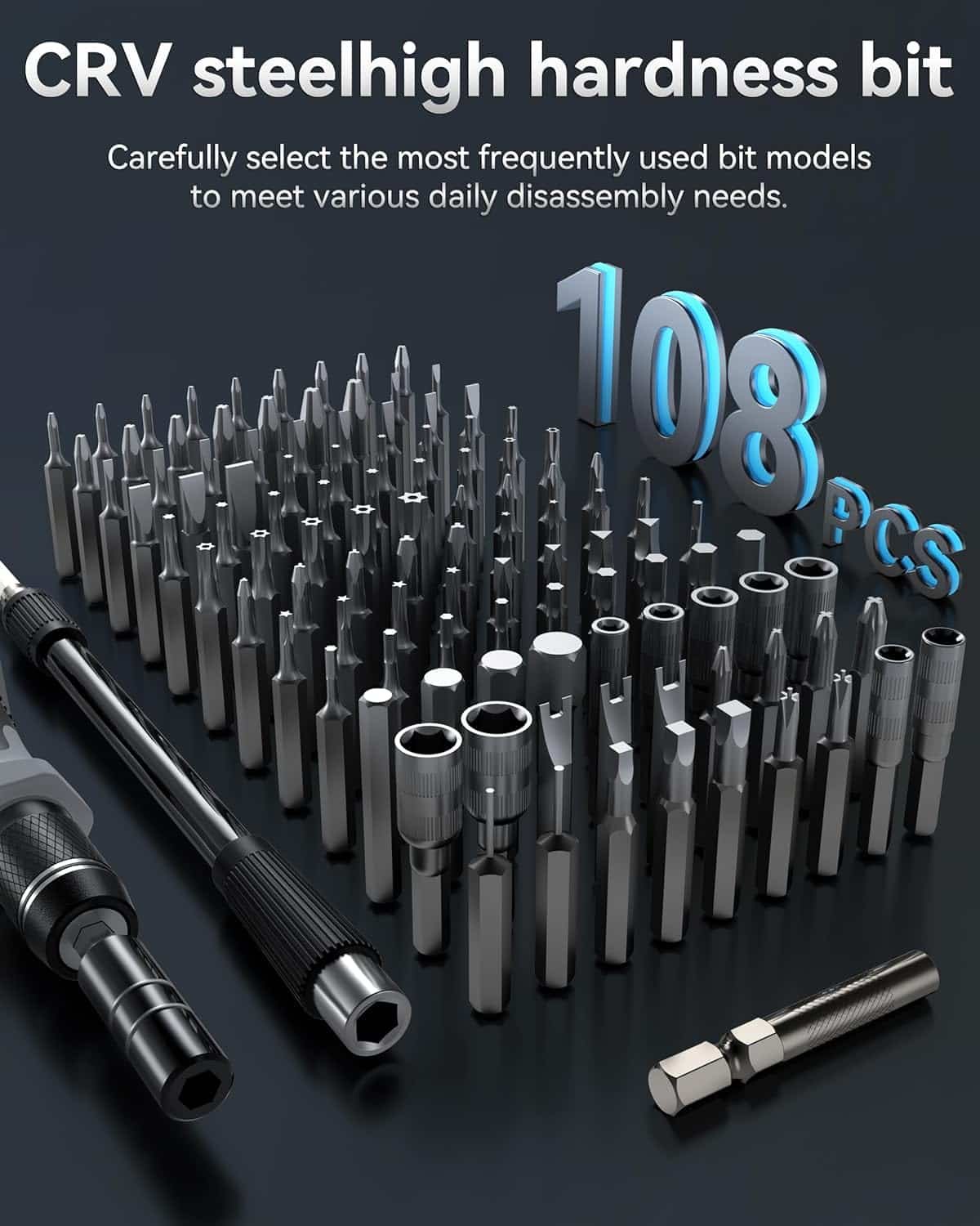 【108 CRV Precision Bit + 24 Other Repair Tools】Our Magnetic Screwdriver Set comes with 108 different sizes of bits and 24 other repair tools. Magnetic Screwdriver Set is made of the highest quality CRV material and Precision Screwdriver is perfect for repairing most smartphones, toys, laptops, computers, eyeglasses, watches, e-digital products and other devices.
