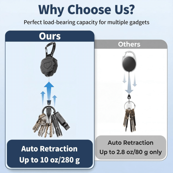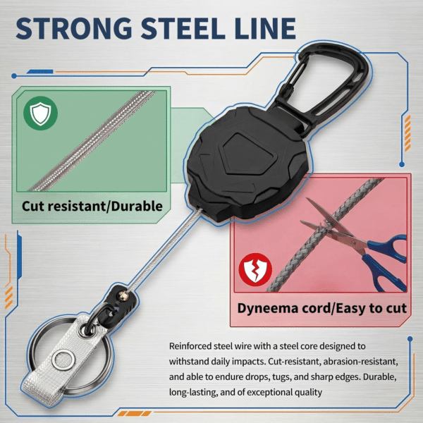 • Tangle-Free Smooth Retraction:Features a smooth retracting mechanism and 360° brass ball for flexible rotation, one-handed access.It is suitable for offices, construction sites, events with staff check-ins,or industrial zones.ideal for outdoor enthusiasts, construction workers, security personnel, bartenders and warehouse staff.
