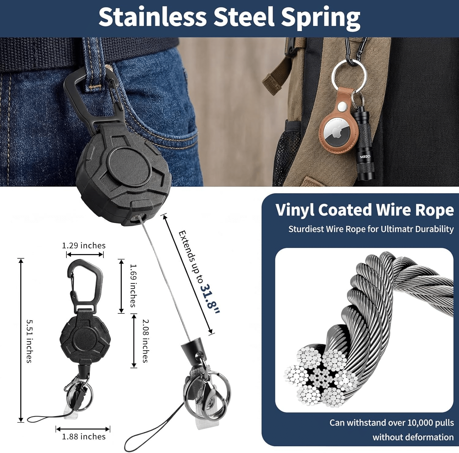 • 31.8-inch Retractable Length: The keychain’s wire rope can extend up to 31.8 inches (80cm), a length that conforms to ergonomic design and meets your retractable requirements for badge reels. No more struggling to find your ID and keys in your pocket or backpack.