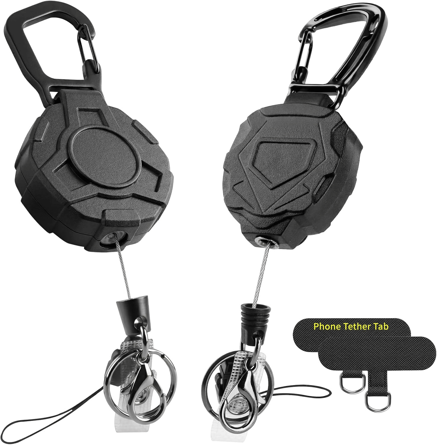 • Multi-function tool:The retractable keychain strong includes 2 phone tether tab and 2 detachable paracord lanyard to keep mobile devices secure during high-movement activities. It also comes with a lobster clasp for hanging special items such as survival whistles, multi-tools, medical shears) or personal items (charms, AirTag cases), maximizing your usability.