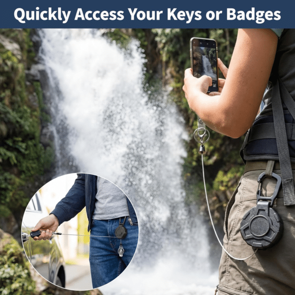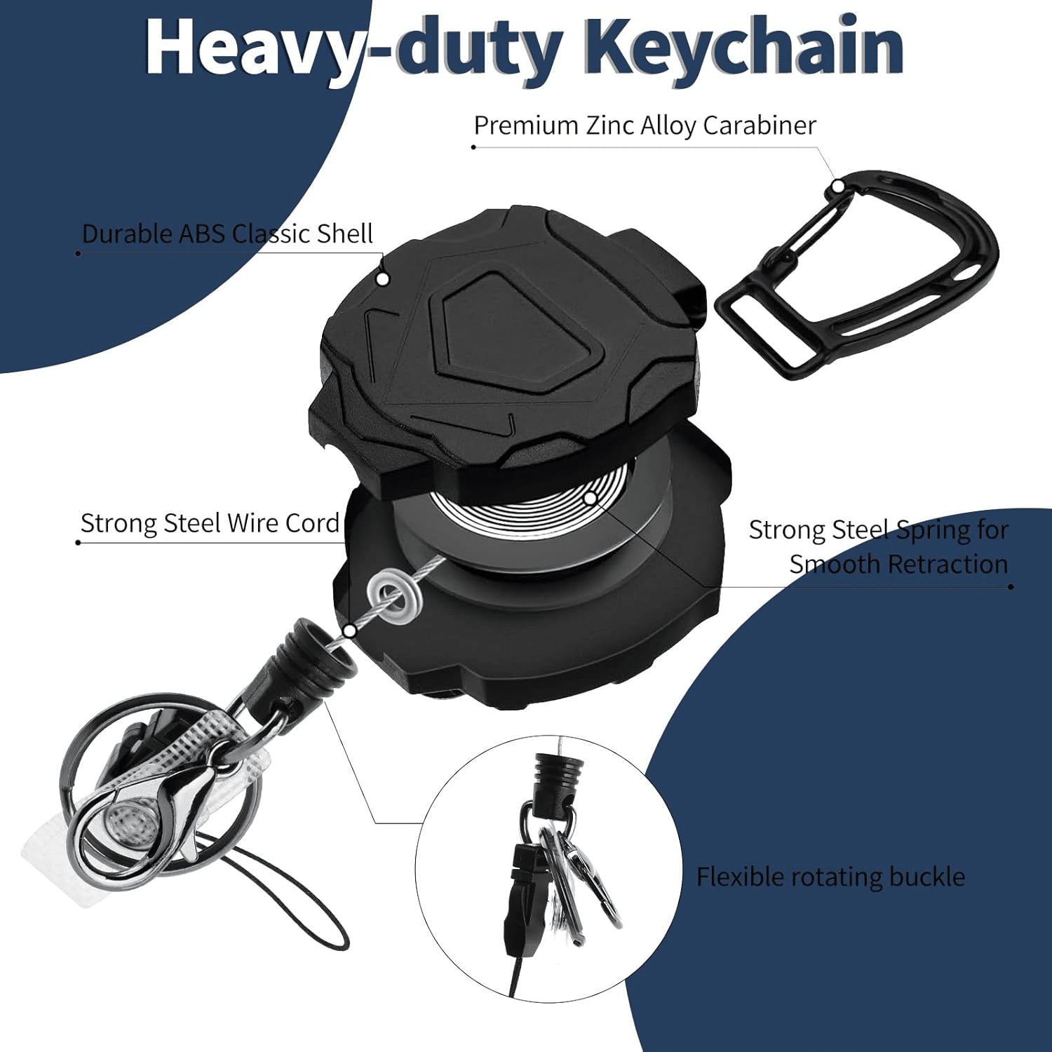• Effortless Key & Badge Access:Our retractable keychain can withstand 10oz tension without sliding down.Extend the cord effortlessly to grab keys, ID badges or accessories, and watch it snap back securely into place when released. The carabiner clip securely attaches to belts, pockets, bags, or backpacks for all-day convenience at work or outdoors.