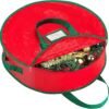 Easy to Carry & Stack: Reinforced handles and dual zippers make this wreath storage box easy to transport. Its compact design allows stackable wreath storage container placement with other christmas storage containers or large storage bags for holidays.