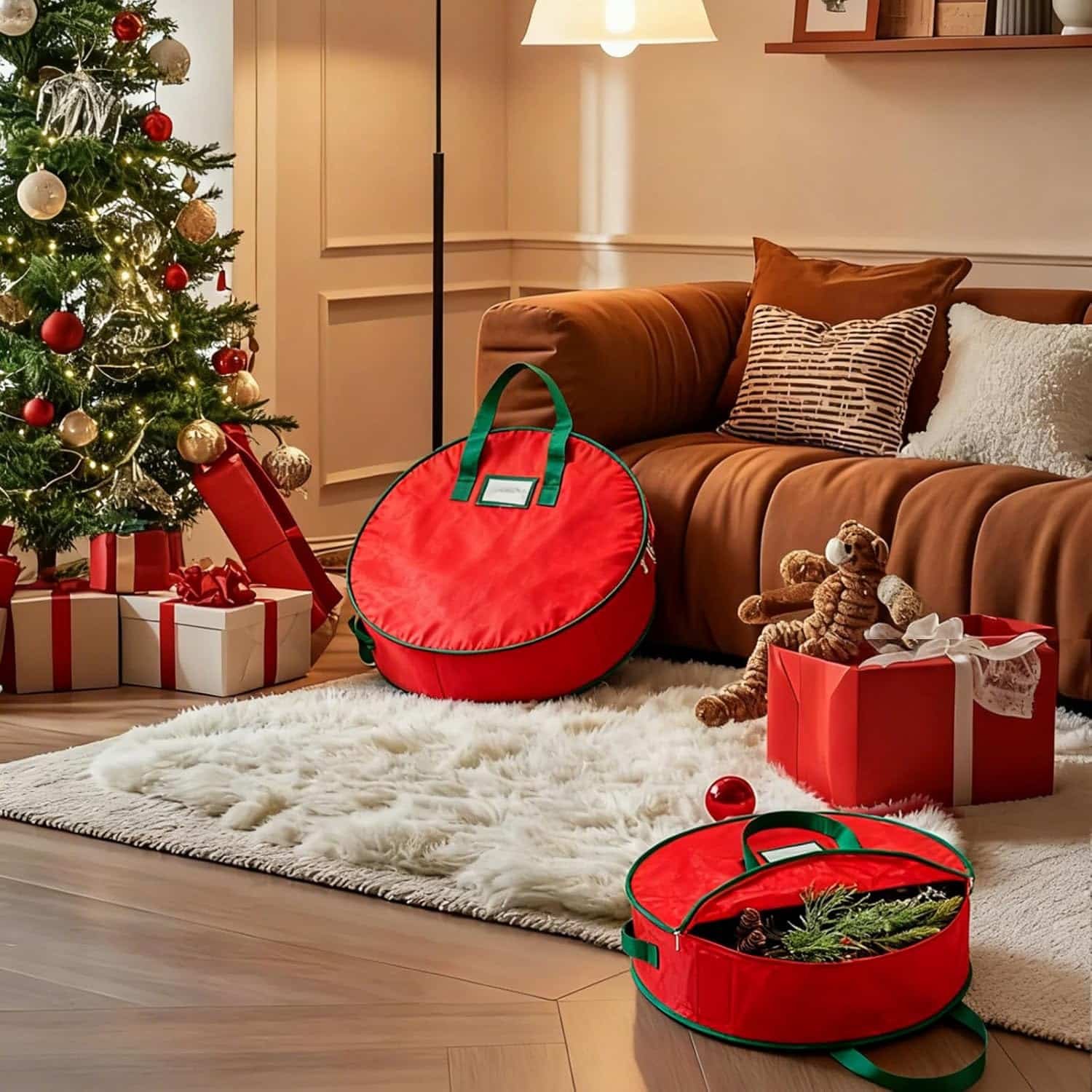Ideal 24-Inch Size: Sized 61×61×18cm wreath storage container fits standard Christmas wreaths without crushing. Works as a wreath box, wreath container, or decorative wreath storage container, providing secure xmas wreath storage for every season.