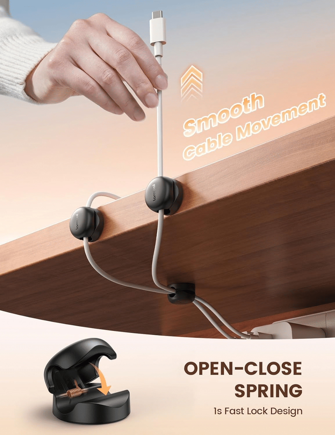 Spring Open-Close Mechanism: Quick, one-handed operation with a spring action and angled opening design for easy cord placement and removal. (Wait 30 minutes after installation for best adhesion.)
