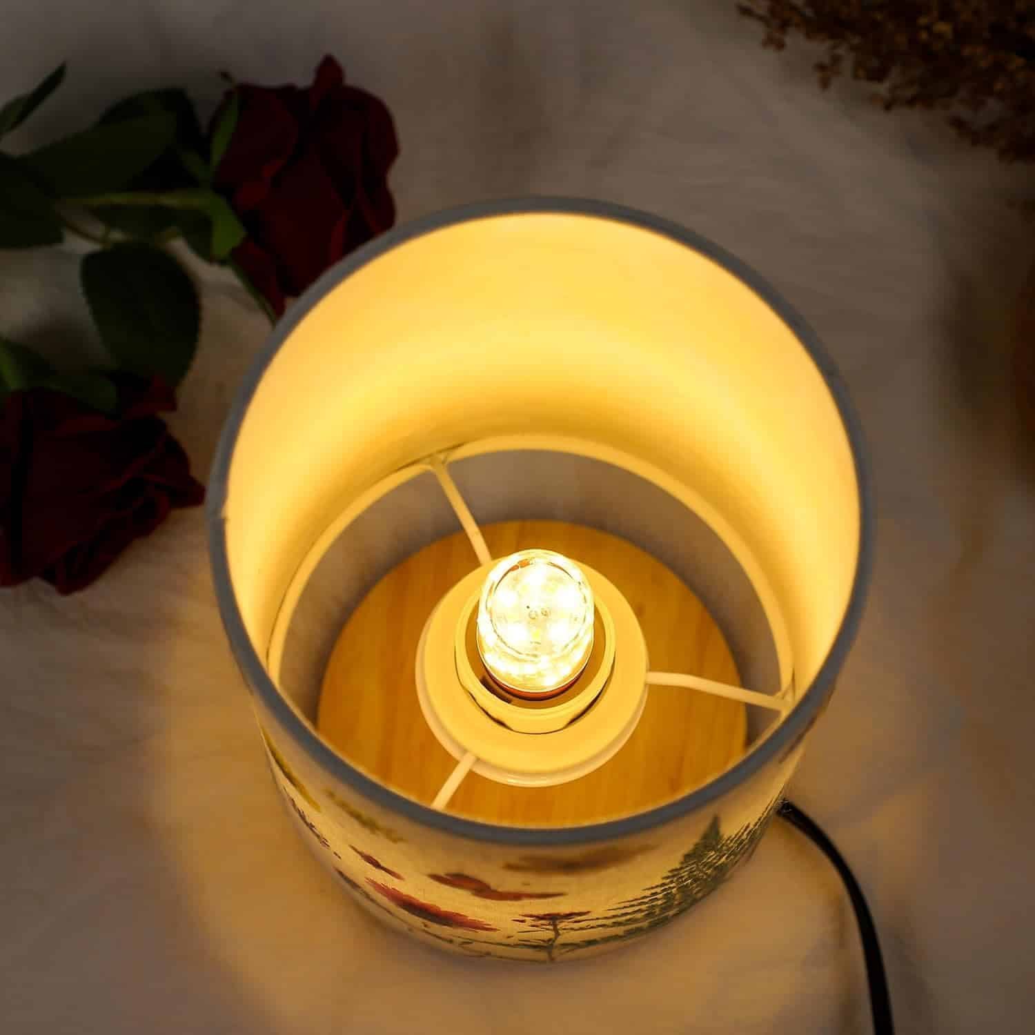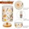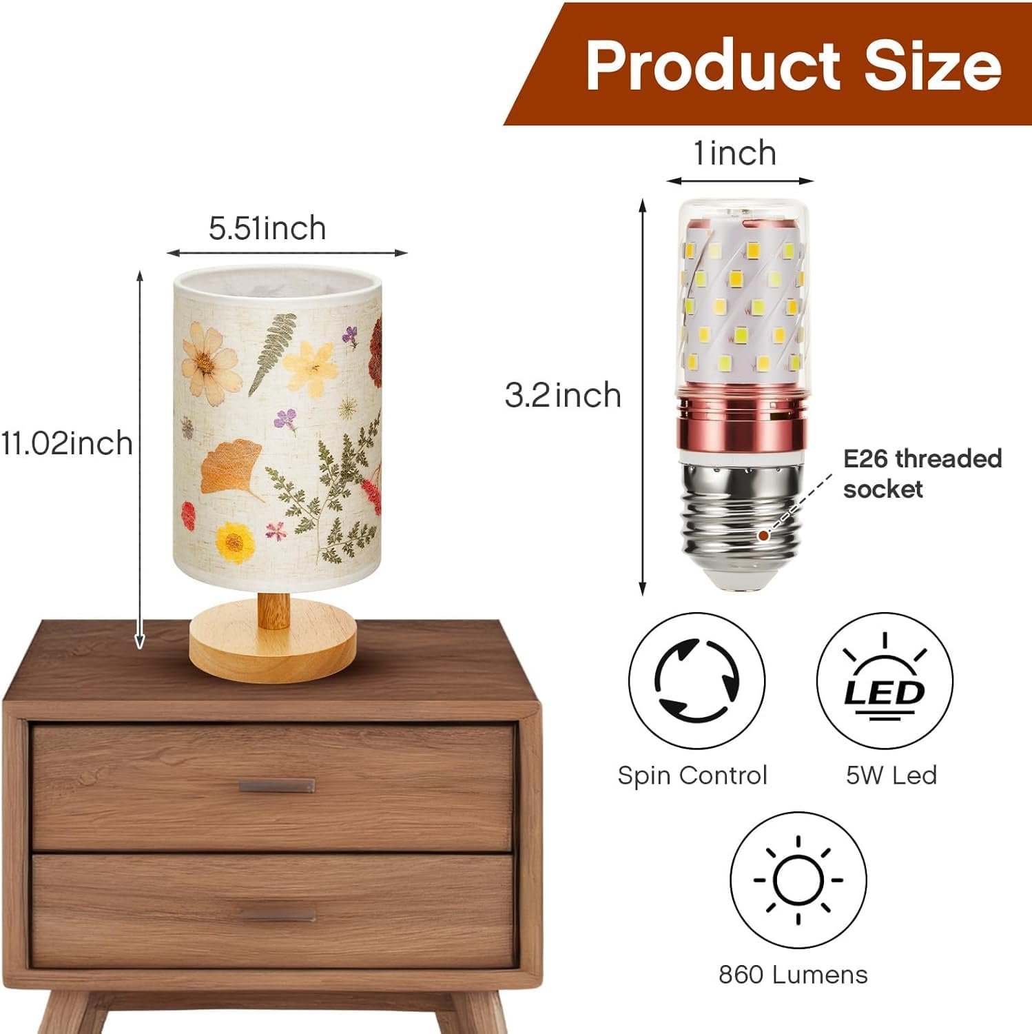 Pressed Flower Bedside Lamp Linen Shade with Wood Base for Bedroom Living Room Desk Nursery