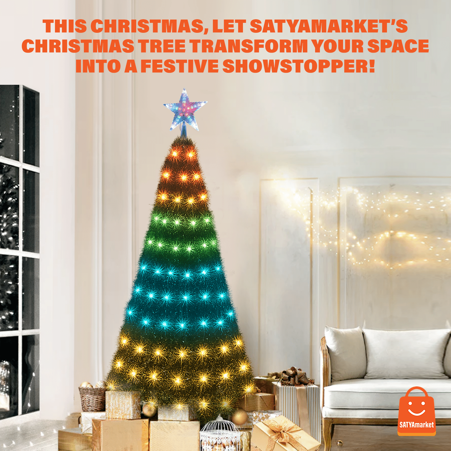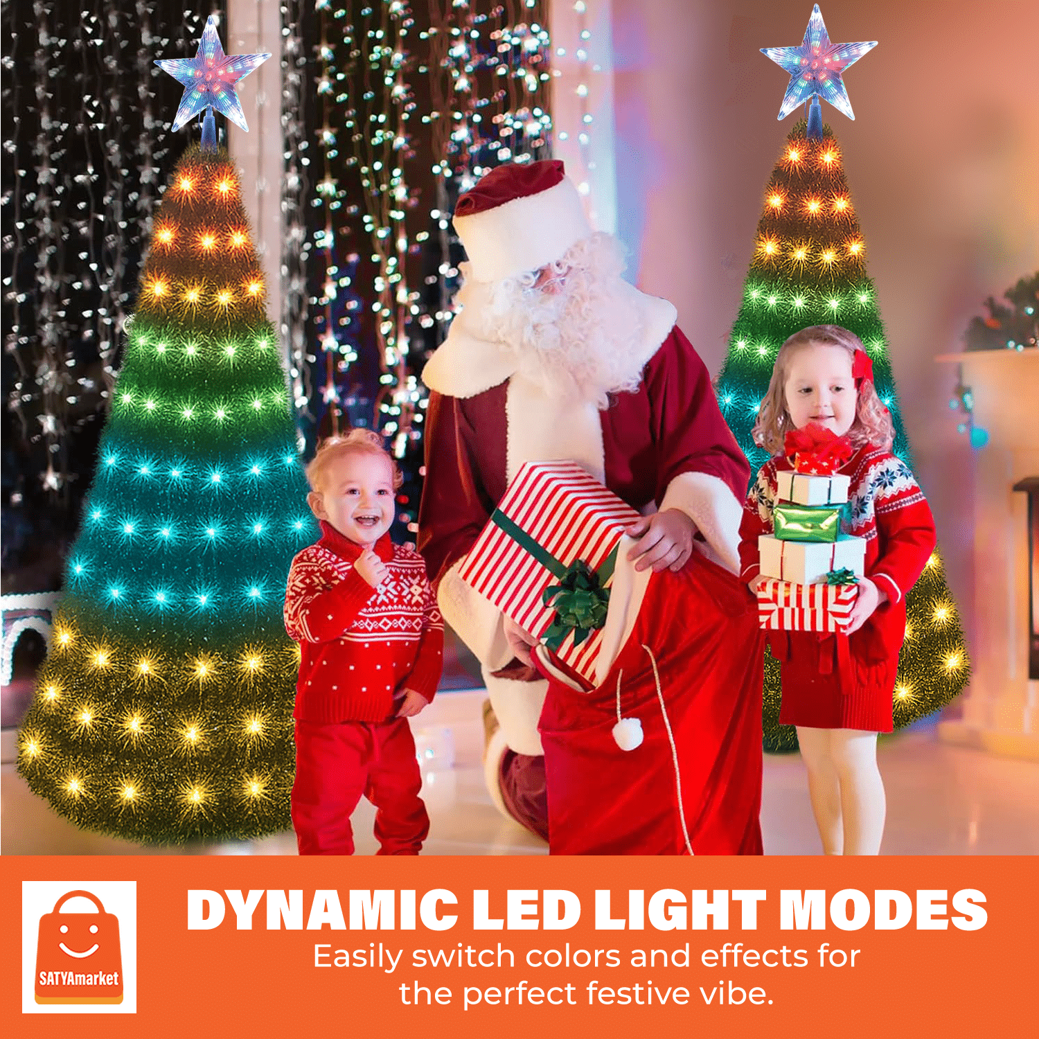 Flashing Tinsel Fun: Your tree comes alive with multicolored flashing tinsel, creating a dazzling display of holiday cheer.