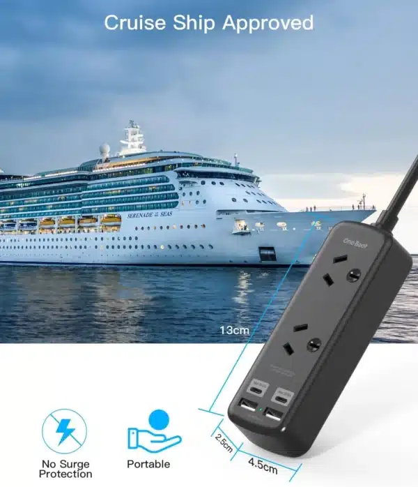【Cruise Ship Accessories Must Haves】Comes with NO SURGE PROTECTION , it’s absolutely a must have travel and Cruise Ship accessories as Cruise lines require that power strips DO NOT have Surge Protection. Compact and lightweight, easy to carry and best for travel.