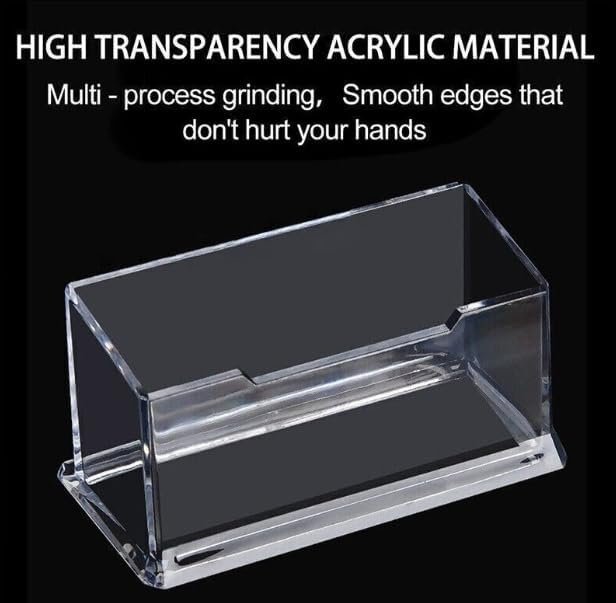 CRYSTAL CLEAR ACRYLIC CONSTRUCTION: The business card holder is made from high-quality, transparent acrylic that provides a crystal-clear view of your business cards. This material not only adds a touch of modern elegance but also ensures durability, making it a reliable choice for everyday use.