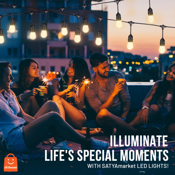 /n Transform your spaces with SATYAmarket LED Festoon Lights, offering a warm white glow and a durable build for both indoor and outdoor use. With a 10-meter length and 10 E27 sockets, these IP65-rated lights are waterproof, windproof, and shatterproof, ensuring safety and longevity in any environment.