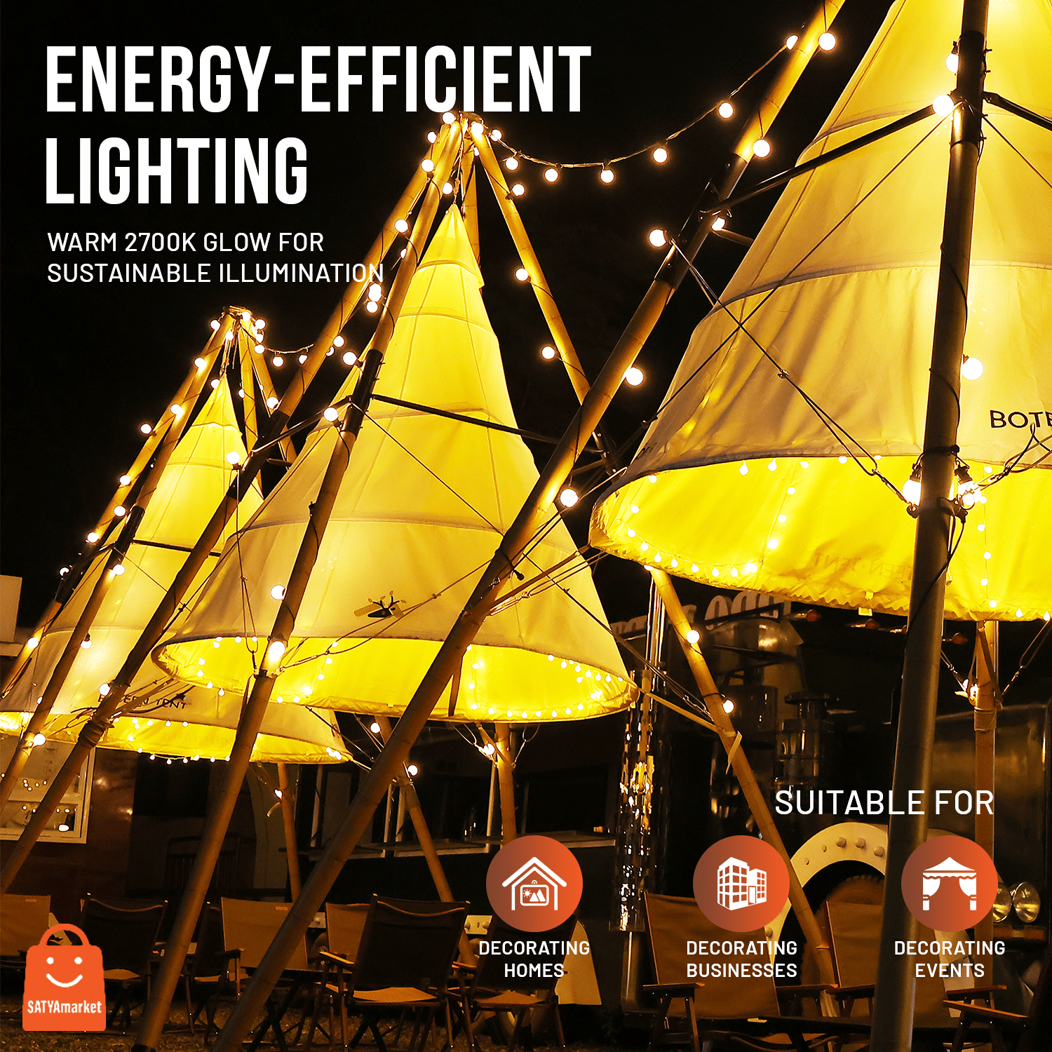 DURABLE & ELEGANT DESIGN: Commercial-grade festoon lights with shatterproof and windproof features, ideal for any occasion.
