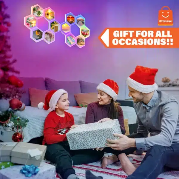 Transform your wall into a smart, interactive art display with the SATYAmarket Hexagonal RGBIC Photo Wall Light Frames. Designed with Tuya smart technology, these 10 modular light panels combine personal memories and dynamic lighting to create a stunning focal point in any room.