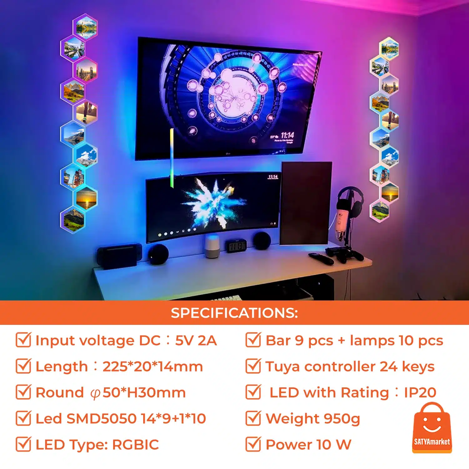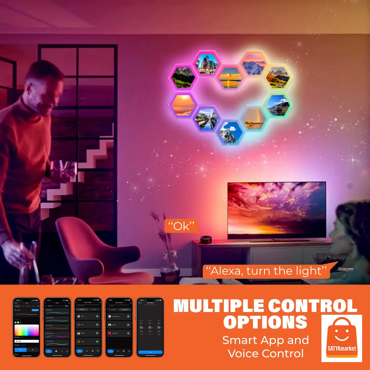 SATYAmarket’s Tuya Smart Hexagonal RGBIC Photo Wall Light Frames (10-Pack) | Wi-Fi App + Voice Control