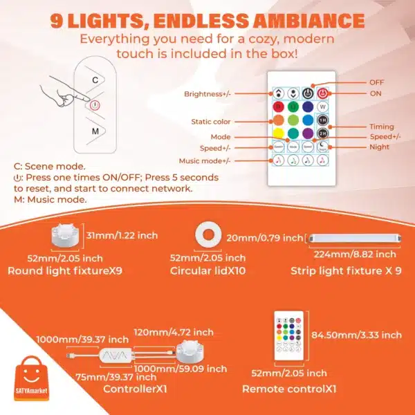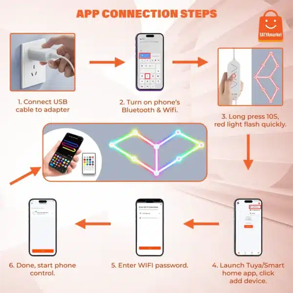 Upgrade your space with SATYAmarket’s premium 9-piece Tuya WiFi RGBIC Aluminum Wall Light Kit — the perfect fusion of modern design and smart technology.