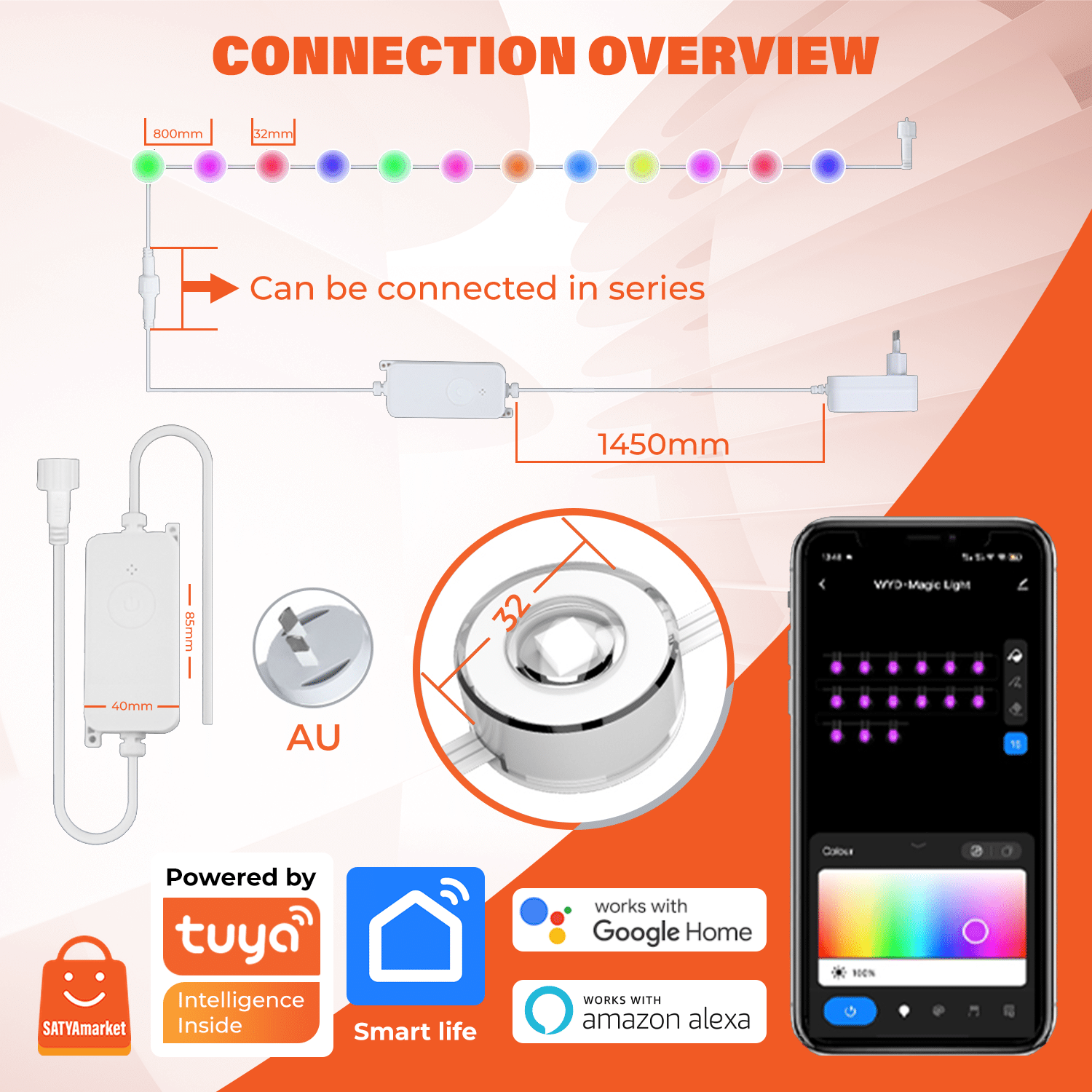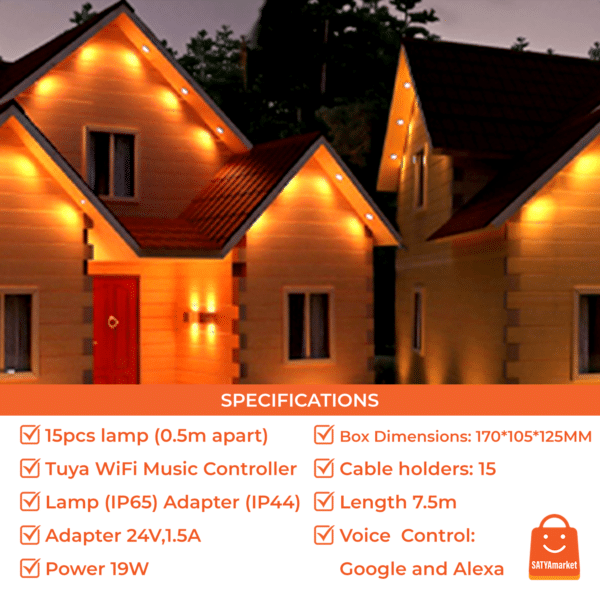 Featuring 15 waterproof LED lamps spaced 0.5m apart, these smart lights deliver vibrant colour transitions and dynamic effects that sync perfectly with your favourite music. Control your lighting effortlessly through the Tuya App, Google Assistant, or Amazon Alexa, and transform your home exterior into a captivating light show for any season.