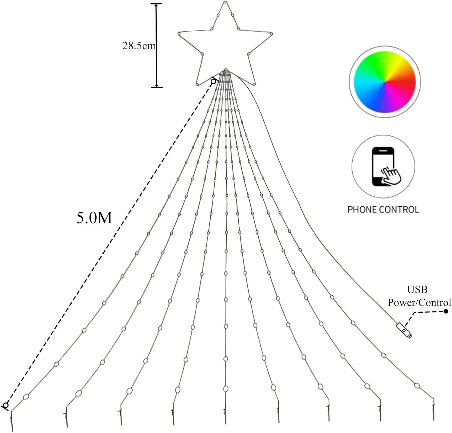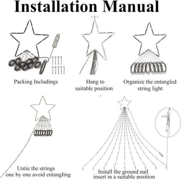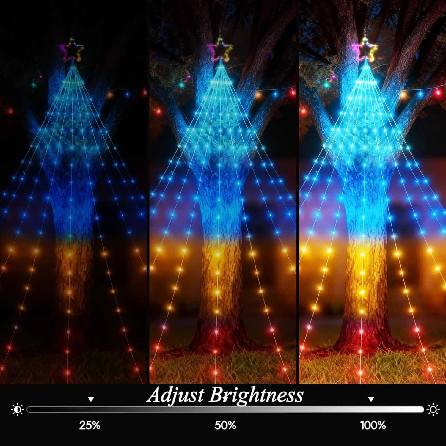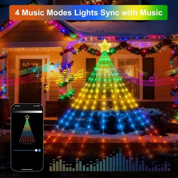 • Independently Controlled Treetop Star – Featuring a 20-LED star measuring 11.14 inches diagonally, this topper offers two modes: warm white static light or synchronization with the string lights below. Easily control it via the app or remote to complete your Christmas tree with a touch of magic.