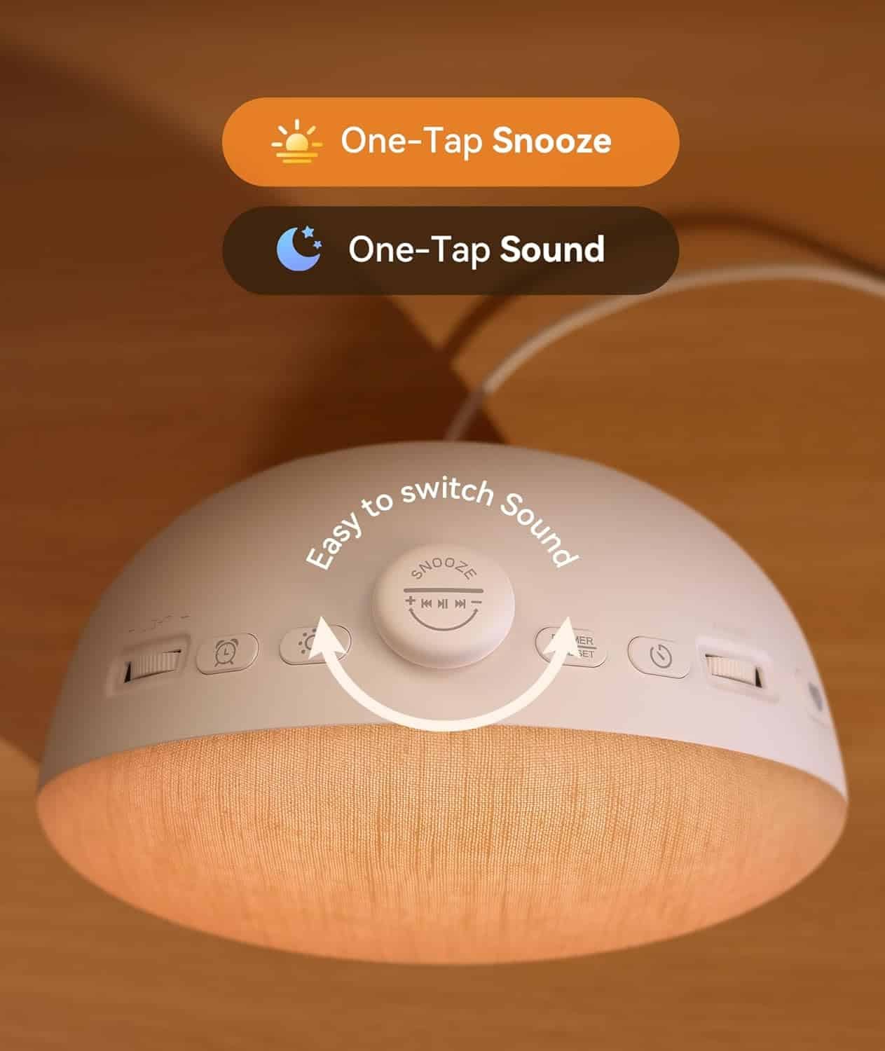 • 𝗦𝗻𝗼𝗼𝘇𝗲 𝘄𝗶𝘁𝗵𝗼𝘂𝘁 𝗙𝘂𝗺𝗯𝗹𝗶𝗻𝗴: That groggy 6am moment when you can’t find the snooze button? Gone. This white noise machine's raised, easy-to-find snooze key lets you hit “just more minutes” without opening your eyes. Small win, huge morning upgrade.